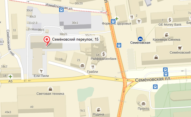Адрес: Россия, г. Москва, Семёновский переулок, д. 15, оф. 710 (рядом с м. Семёновская)